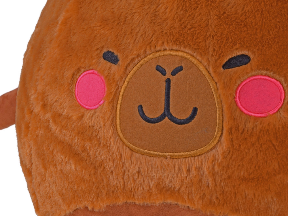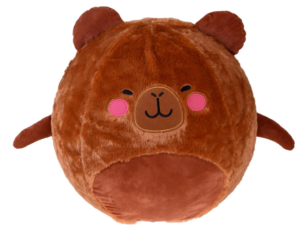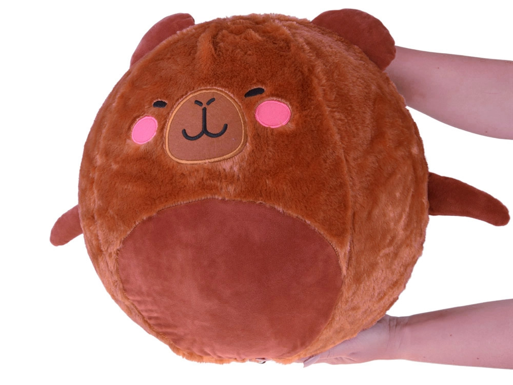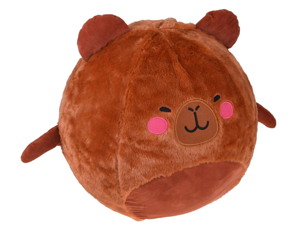 Odkrijte izjemno plišasto žogo z vzorcem rjave kapibare, ki spodbuja aktivno igro in prinaša veliko smeha. Zahvaljujoč prožnemu gumijastemu jedru se odlično odbija, medtem ko je mehak plišasti površinski material nežen in varen tudi za mlajše otroke.