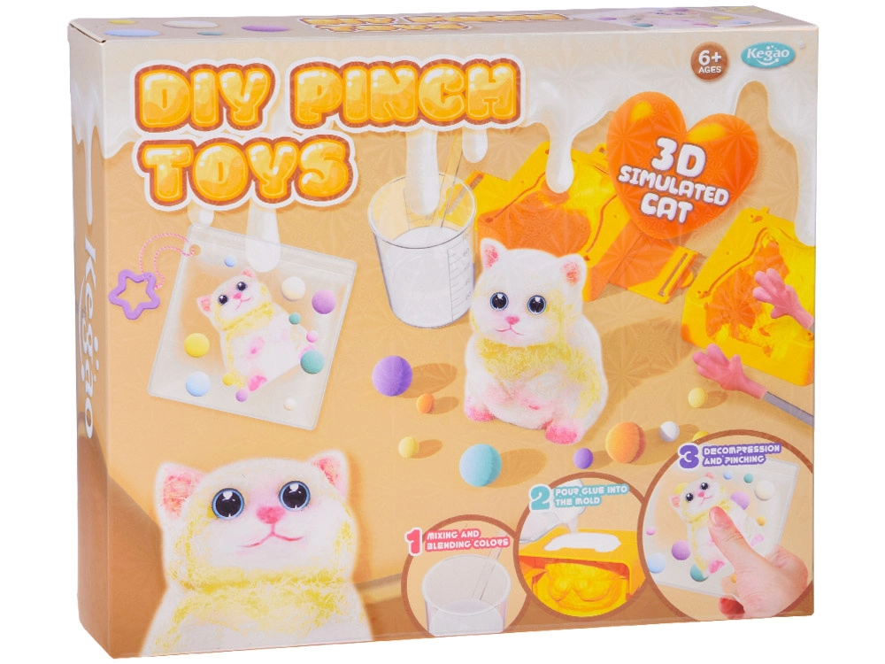 S tem kompletom »naredi sam« si otroci sami zmešajo zmes, jo vlijejo v mačjo formo in po strditvi okrasijo z barvo, očkami, puhastim kožuščkom ter mehkimi kroglicami. Priložena okrasna vrečka z verižico spremeni izdelek v praktičen obesek, ki ga lahko nosijo povsod – na nahrbtniku, torbi ali ključih.