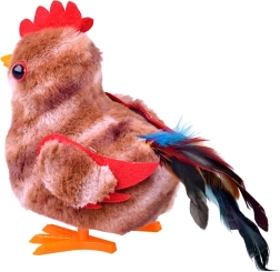 Po vklopu se petelin požene v drobnem koraku in veselo maha s krili – popolno za dinamično in veselo igro.