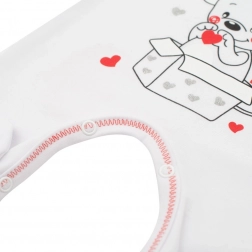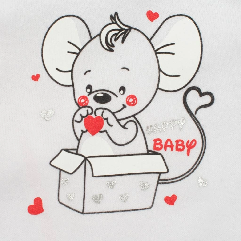 Praktični pritiskači na ramenu in med nožicami omogočajo hitro oblačenje brez nepotrebnega stresa. Kontrastno barvno obrobljanje in velik tisk miške ustvarjata prikupen dizajn, ki bo razveselil tako otroke kot starše.