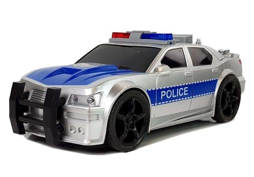 Realistični policijski avto bo navdušil vsakega malega ljubitelja interventnih vozil. Dovolj ga je rahlo potisniti in zahvaljujoč frikcijskemu (vztrajnostnemu) pogonu se sam odpelje. LED luči in zvoki sirene se aktivirajo z gumbi na strehi – igra je tako napeta in prepričljiva.