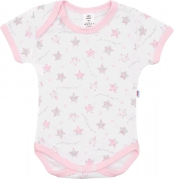 Kratek rokav, preklopna ramena in zapenjanje med nožicama omogočajo hitro oblačenje in previjanje brez nepotrebnega stresa.