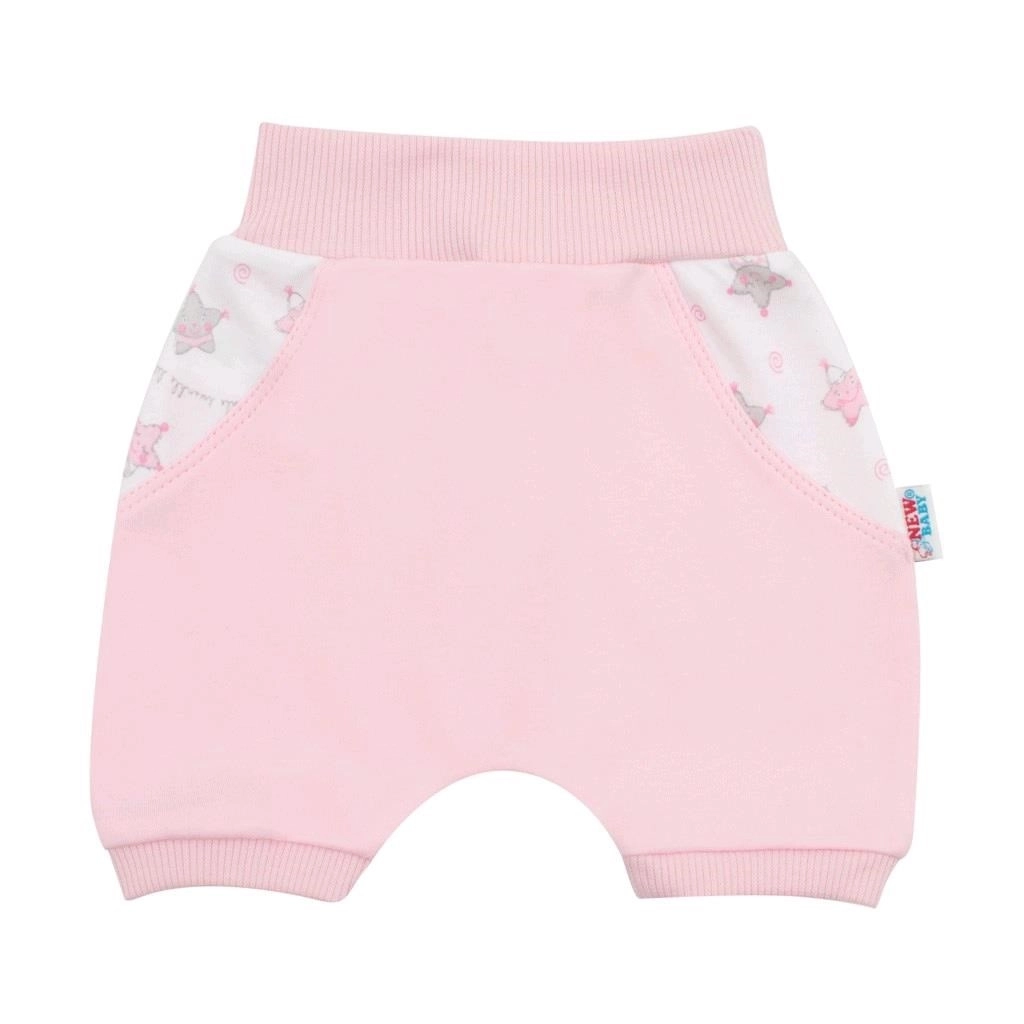 Ta poletni bombažni komplet New Baby Perfect Summer navduši z nežnim otroškim vzorcem in premišljenimi detajli za vsakodnevno nošenje. Bodij ima preklopen izrez in praktično zapenjanje na pritiskače med nožicama, kratke hlače s širokim rebrastim pasom odlično držijo in ne tiščijo, elastični naglavni trak pa prijetno stoji na glavici.