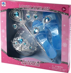 Z univerzalno velikostjo dodatkov in lahko zasnovo je set primeren za otroke, ki obožujejo pravljice in svet kraljestev. Dovolj je, da obujete čeveljčke, si nadenete krono in zabava se lahko začne.