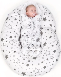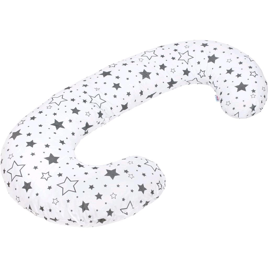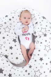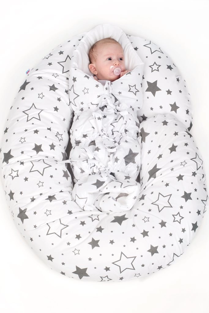 Stilna in praktična nadomestna prevleka za blazino za dojenje v obliki črke C znamke New Baby v nevtralnem sivem motivu zvezd. Zahvaljujoč skriti zadrgi jo hitro in preprosto zamenjate, material iz 100 % bombaža je nežen do občutljive kože in ima certifikat OEKO-TEX Standard 100.