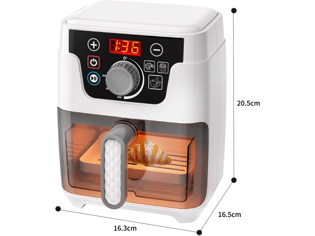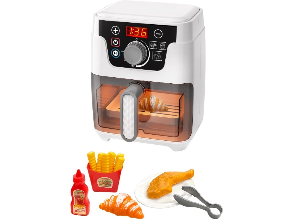 Realistična otroška kuhinjska pečica na baterije bo razveselila male kuharje od 3. leta dalje. Kompaktne mere 18,5 × 17 × 15 cm se podajo v vsako igralno kuhinjico. Izdelana je iz kakovostne plastike, dobavljena v embalaži z okencem in napajana z 3× AA (niso priložene). Spodbuja kreativnost, razvoj spretnosti in prinaša zabavo kjerkoli in kadarkoli.