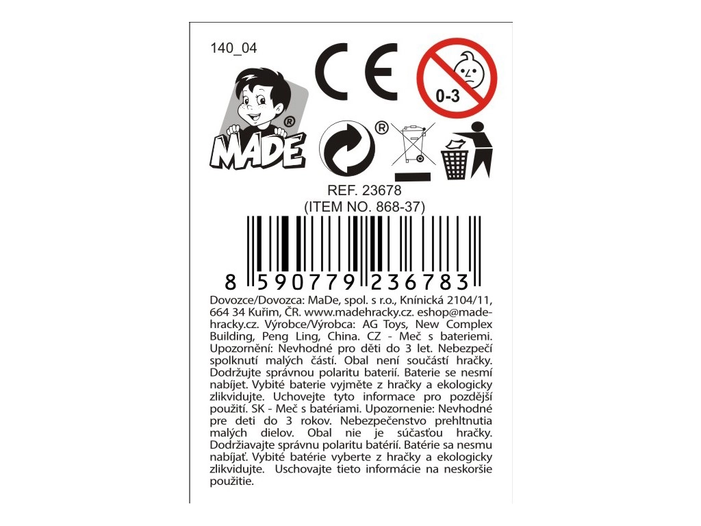 Meč je dobavljen v display škatli, kar olajša razstavljanje in shranjevanje. Praktične dimenzije omogočajo udoben oprijem in enostavno rokovanje tudi mlajšim otrokom.