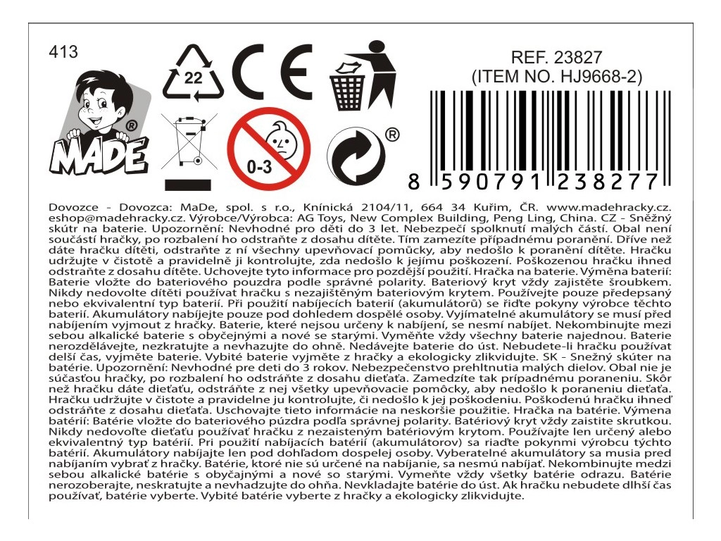 Ta snežni skuter je univerzalna izbira za otroke in odrasle, ki imajo radi zimske motive in zbirateljske modele. Odlikujejo ga trpežen material, enostavna uporaba in takojšnja pripravljenost za igro.