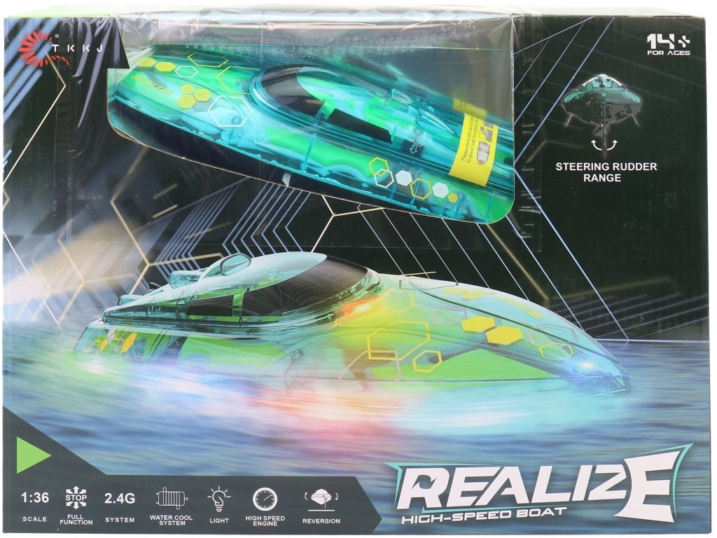 Ta trpežen RC čoln je zasnovan za hitro in zabavno plovbo po ribniku, bazenu ali mirni vodni površini. Kakovostno plastično ohišje zagotavlja dovoljšnjo trdnost in nizko težo za živahno gibanje ter enostavno upravljanje. Zaradi privlačnega dizajna bodo otroci doživeli veliko akcijskih dogodivščin na vodi.