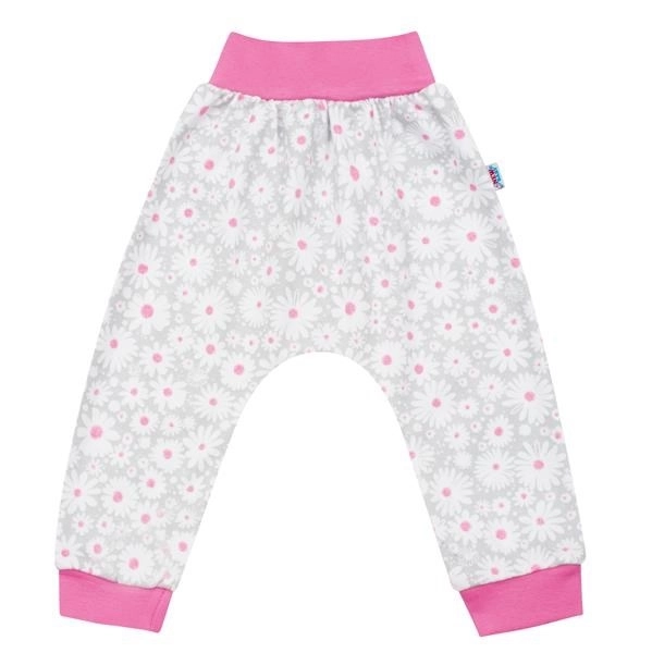 Hlačke imajo širši udoben pas, so zožane pri hlačnicah z robom, po celotni površini pa jih krasi cvetlični potisk. Zahvaljujoč 100 % bombažu je komplet mehak, zračen in nežen do dojenčkove kože.