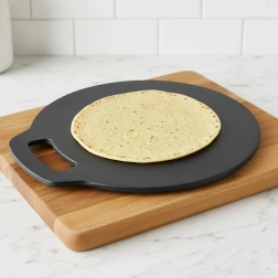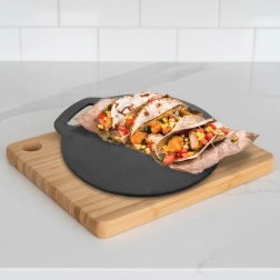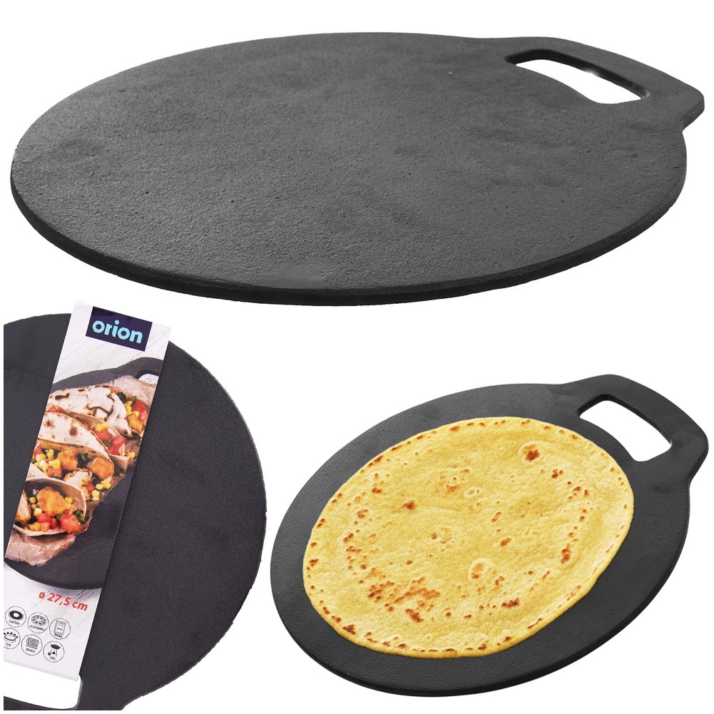 Univerzalna litoželezna ponev s premerom 25 cm za pripravo tortilj, palačink, krompirjevih polpetov in pice. Masivno lito železo odlično prevaja in zadržuje toploto, je odporno na visoke temperature ter je primerno za plinske, električne, steklokeramične, halogenske in indukcijske kuhalne plošče, v pečico, na žar in neposredno na ogenj.