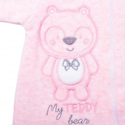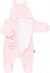 Otroški semišasti pajac s kapuco New Baby Sweetheart v nežni rožnati barvi je idealen za hladnejše dni in domače udobje. Ljubek potisk medvedka bo razveselil starše in dojenčke, popolna podloga pa povečuje udobje pri nošenju.
