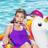 Uživajte v poletni zabavi z izrazitim in igrivim obročem v obliki samoroga, ki odlično plava, omogoča dober oprijem in na vodi nepreklicno izstopa. Zahvaljujoč odpornemu, preizkušenemu vinilu je idealen za vsakodnevne vodne vragolije in sproščeno poležavanje.