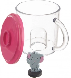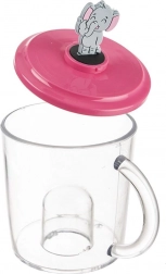 Praktična skodelica za otroke z ljubko figurico slona na pokrovčku, ki jo je mogoče sneti in uporabiti kot igračo. Skodelica je izdelana iz zelo trpežnega, prozornega Tritana – materiala, ki ne prevzema vonjev ali okusov in je za otroke varen (brez BPA). Zaradi kompaktnih mer se udobno drži in je odlična za vsakodnevno pitje doma ali na vrtu.