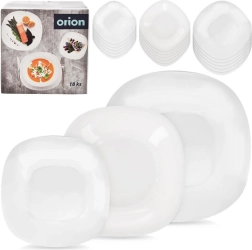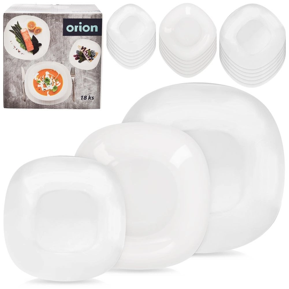 V paketu je 18 delov: 6× desertni krožnik 20 × 20 × 1,5 cm, 6× globoki krožnik 21 × 21 × 3,5 cm (500 ml) in 6× plitvi krožnik 26,5 × 26,5 × 2 cm. Opalno steklo je lahko, čvrsto in enostavno za čiščenje, zato je idealno za intenzivno vsakodnevno uporabo.