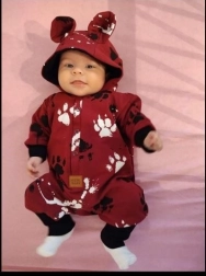 Kapuča z ljubkimi ušeski doda pajacu igriv videz, širši elastični robovi na rokavih in hlačnicah pa pomagajo ohranjati toploto. Pajac je odlična izbira za prehodno obdobje – za pomlad in jesen.