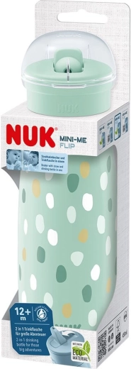 Stilna in praktična otroška steklenička NUK Mini-Me Flip s prostornino 450 ml je namenjena otrokom od 12 mesecev. Ponuja ustnik 2v1 s slamico in možnost pitja brez nje, je odporna na grizenje in izdelana iz 82 % trajnostnih materialov. Steklenička je neprepustna, ima zaščitni pokrovček za na pot in je primerna za pomivanje v pomivalnem stroju. Brez BPA, v modernem dizajnu in v skladu s standardom EN 14350.