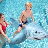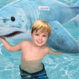 Morski pes z izpopolnjenim potiskom, plavutmi in repom izstopa v vsakem bazenu. Velikost 183 × 102 cm nudi udobje in stabilnost pri vožnji.