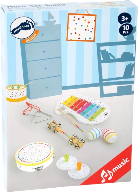 Odkrijte veselje do glasbe s to simpatično, pikčasto seto Small Foot – idealno za prve glasbene korake otrok. Set ponuja 6 različnih instrumentov z edinstvenimi zvoki in podpira razvoj ritma, koordinacije in sluha. Zahvaljujoč kakovostni kombinaciji lesa in kovine je komplet trpežen in varen za otroke od 3 let. Ne gre za glasbene inštrumente, temveč za igrače za zabavo.