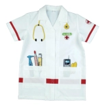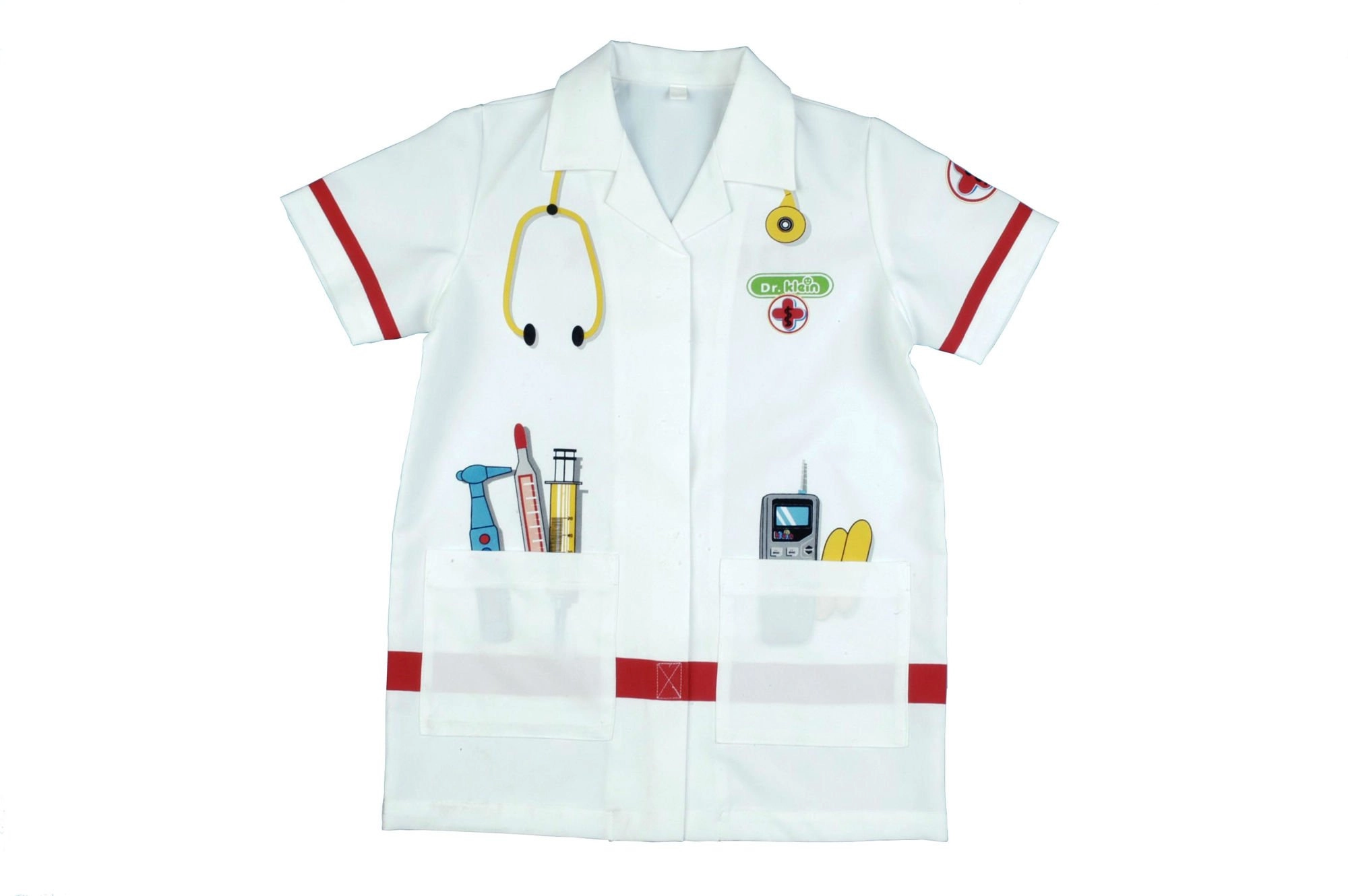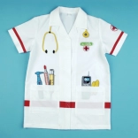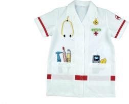 Otroški zdravniški plašč KLEIN spodbuja domišljijo in razvija socialne veščine pri igri zdravnika. Lahek in udoben kroj z ovratnikom, kratkimi rokavi in zapiranjem na ježka omogoča enostavno oblačenje in slačenje. Barvni potiski pripomočkov igri dodajo pristnost in zabavo.