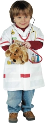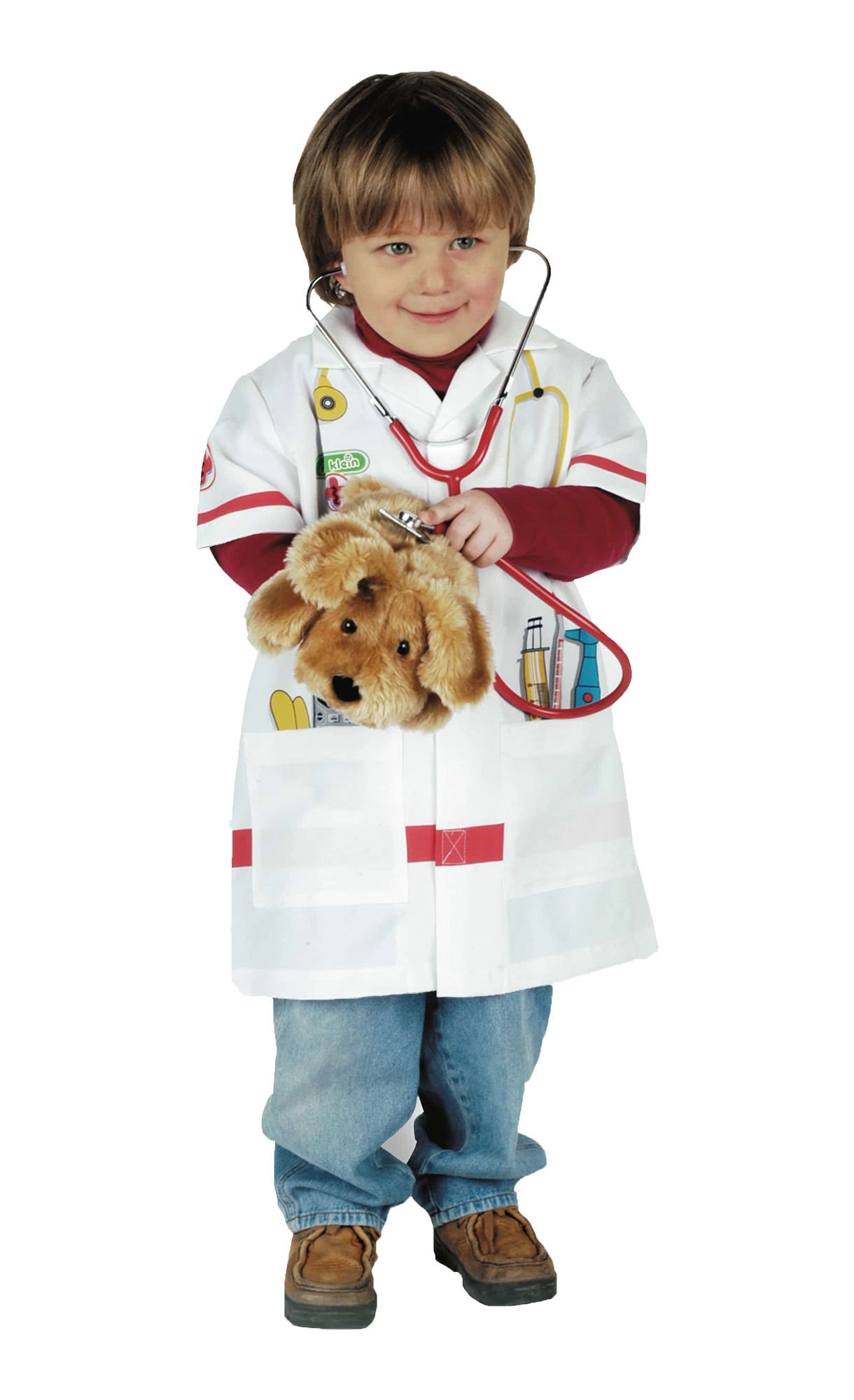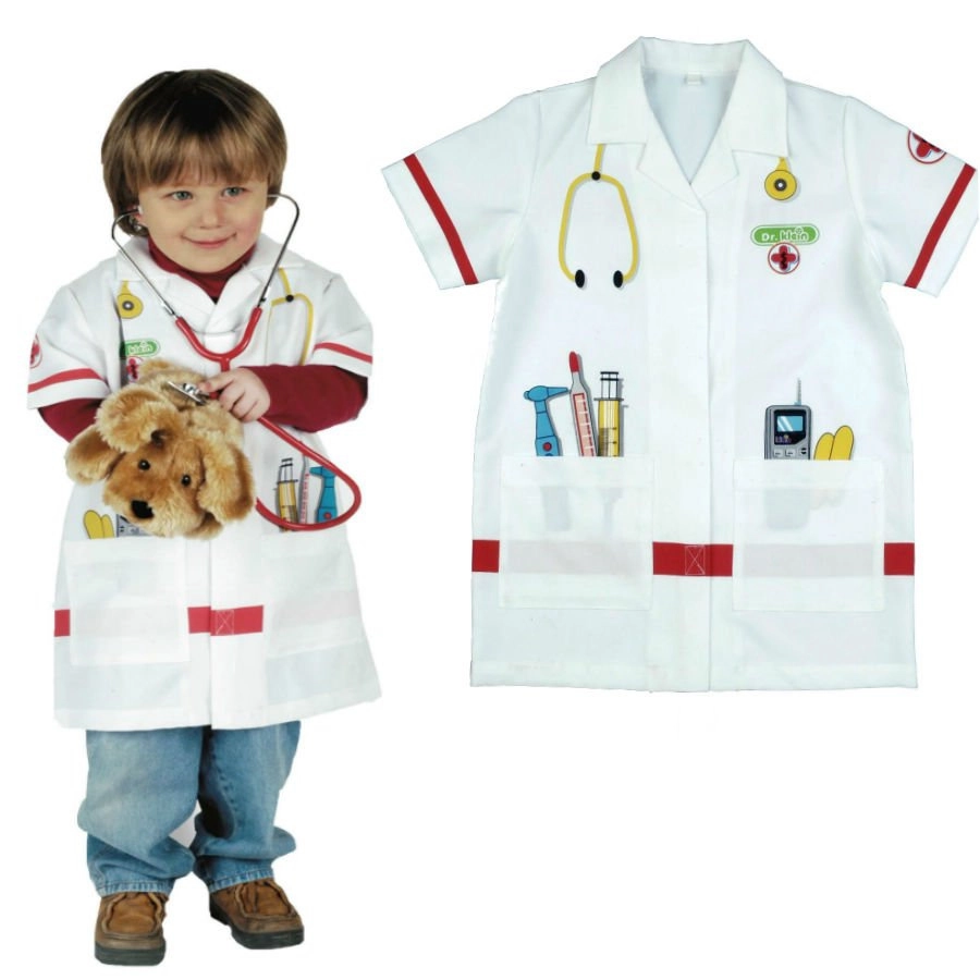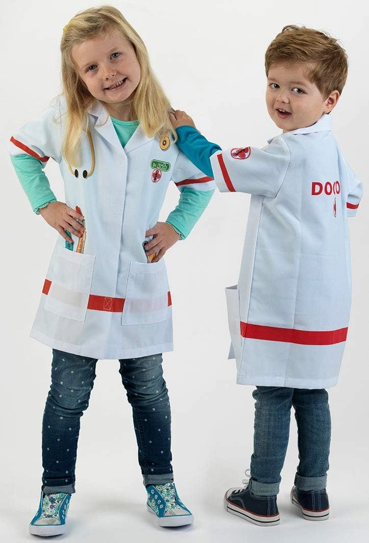 Univerzalen dizajn je primeren za deklice in dečke, premišljene mere pa odlično pristajajo otrokom, starim 3–5 let. Dva velika žepa sprejmeta drobne dodatke za igro zdravnika, zato je vse pri roki.