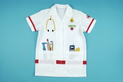 Stetoskop, termometer, brizga in drugi motivi spodbujajo realistično igro zdravnika ter razvijajo otroško domišljijo.