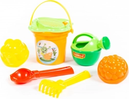 Ta univerzalni komplet za pesek spodbuja ustvarjalnost, fino motoriko in domišljijo otrok. Zaradi kompaktne velikosti in lahkega materiala se zlahka prenaša in je idealen za vsakodnevno igro na prostem. Vedro s sitom (Ø 12 cm) olajša presejanje peska, medtem ko kanglica doda igri vodni element.