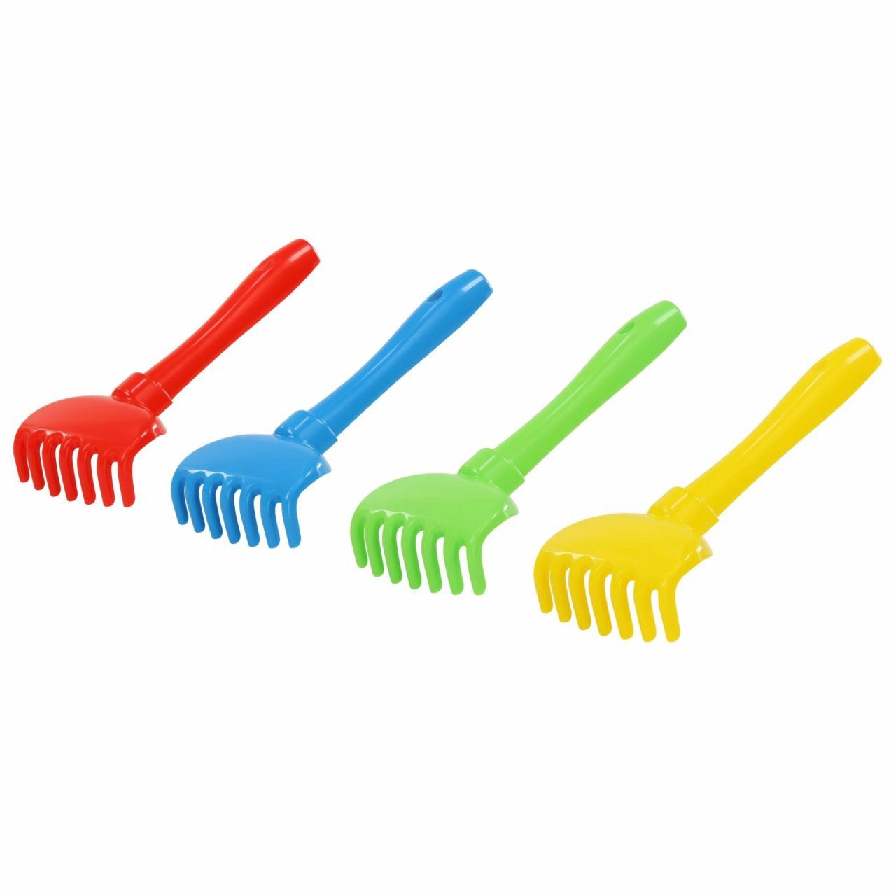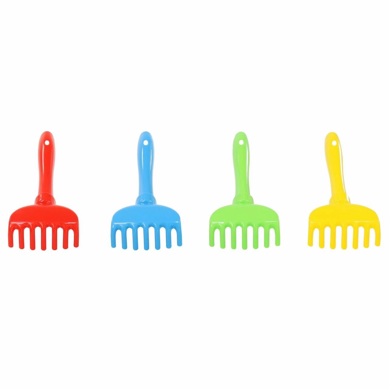 Odkrijte veselje igre v pesku s praktičnimi plastičnimi grabljicami dolžine 19 cm. Izdelane so iz lahkega in čvrstega materiala, ki prenese vsakodnevno uporabo na igrišču in ob vodi. Gladka površina in zaobljene oblike zagotavljajo varno uporabo za otroke.