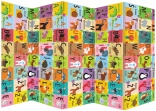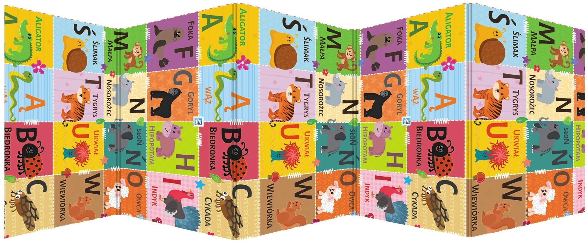 Vesele ilustracije živali in črk spodbujajo spoznavanje abecede ter razvijajo besedišče skozi igro.