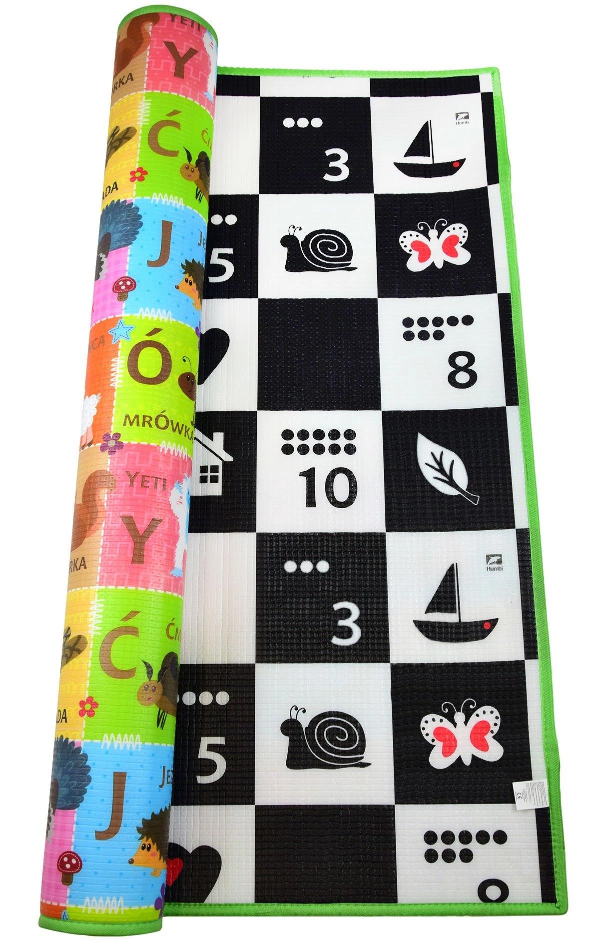 Odkrijte varno in udobno mesto za igro, plazenje in prve korake. Penasta podloga HUMBI združuje kontrastno vizualno stimulacijo za najmlajše z igrivim učenjem abecede in številk. Zahvaljujoč 1,5 cm debeli EPE peni odlično blaži udarce in izolira pred mrazom, zato je idealna za otroško sobo, dnevni prostor in tudi za vrt.