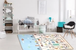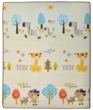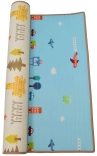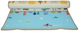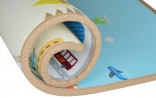 Obe strani krasijo izobraževalni motivi: na eni strani mesto z uličicami za vožnjo z avtomobilčki, na drugi strani živalice na bež podlagi. Ne vsebuje formamida, ftalatov, PVC ali BPA, izpolnjuje EN71-1/2/3 in zahteve REACH, seveda z CE.
