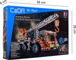 Set iz serije Hi‑Tech je namenjen vsem, ki imajo radi izzive in natančne modele. Mobilni žerjav v oranžni barvi je zasnovan z poudarkom na detajlih, ponuja premične dele in se zahvaljujoč pull‑back pogonu po navitju in spustu zapelje več kot 8 metrov. Jasna, korak‑za‑korakom navodila bodo ob nadzoru odrasle osebe osvojili tudi mlajši graditelji.