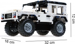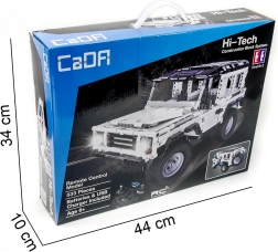 Konstrukcijski set CaDA Hi‑Tech je odlična izbira za male in velike konstruktorje, ki imajo radi izzive. Belo off‑road vozilo v slogu Jeepa ponuja čvrsto konstrukcijo, odpirajoče se elemente in gladko upravljanje preko 2,4 GHz. Po sestavi se model zapelje do 6,3 km/h, z zanesljivo radijsko povezavo pa boste uživali v tekočem krmiljenju naprej, nazaj in zavijanju.