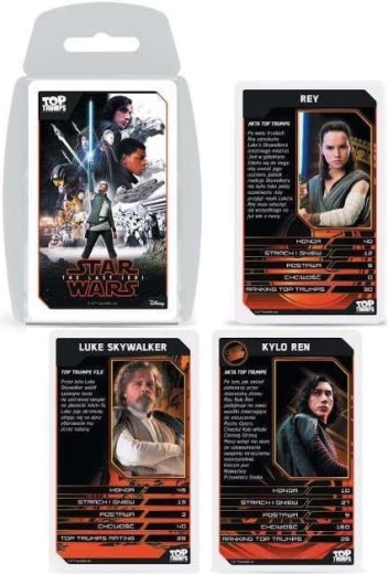 Top Trumps je lahka in zasvojljiva družinska kartna igra, v kateri primerjate lastnosti likov. Vsaka karta ima pet številčnih parametrov – kdor izbere močnejšo kategorijo, pobere karte nasprotnikov. Igra poteka hitro, hkrati pa ponuja napetost in strategijo, in zahvaljujoč priljubljenim likom iz Vojne zvezd zabava otroke in odrasle.