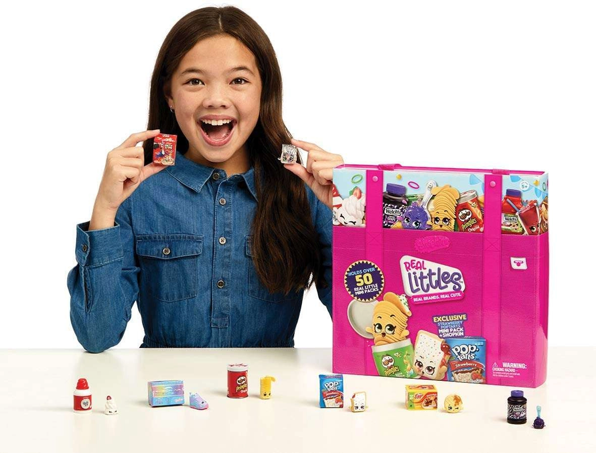 Lahka, a trpežna torba z ročaji sprejme do 50 mini paketkov in figuric Shopkins – popolna za izlete in šolo.