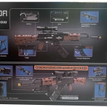 Sestavljajte in odkrivajte premične dele, snemljiv nabojnik in zgornjo optiko. Model izstopa z avtentičnimi proporci in stabilno konstrukcijo.