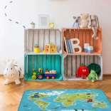 Ta kakovosten otroški tepih znamke ACHOKA združuje igro, učenje in udobje. Vesela grafika z zemljevidom sveta in živalmi spodbuja naravno radovednost otrok, razvija njihovo domišljijo in znanje ter hkrati polepša vsak otroški prostor. Žametno mehak površinski sloj je prijeten na dotik in primeren za vsakodnevno igro, sprostitev ter urjenje motorike.