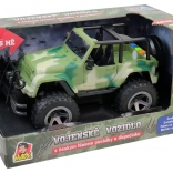 Vojaški jeep v merilu 1:16 je idealna igrača za male pustolovce. Zaradi pogona na vztrajnik se zažene z enostavnim potiskom, ob tem pa navduši z svetlečimi lučmi in avtentičnimi češkimi glasovi posadke, ki igri dodajo pristnost. Odporna plastična izdelava je primerna za vsakodnevno igranje.