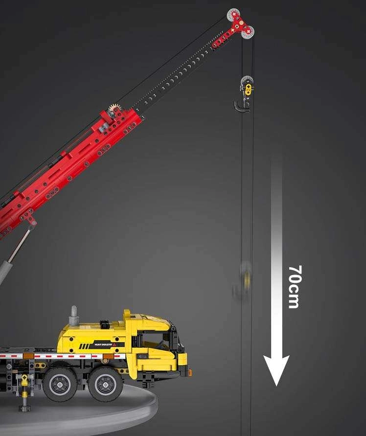 Ta tehnični model iz edicije Make Your Bricks Move bo navdušil vsakega ljubitelja gradbenih strojev. Rumeno podvozje z več osmi, realistična kabina in dolga rdeča teleskopska roka z vitlom prinašajo pristno izkušnjo gradnje in igre. Zahvaljujoč 360° vrtenju nadgradnje boste tovor zlahka premestili natanko tja, kjer je potrebno.