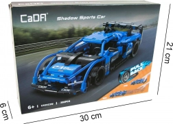 Sestavite svoj športni avtomobil Shadow blagovne znamke CADA iz 380 kosov. Model ima navijalni (pull‑back) pogon, gumijasta kolesa za vožnjo po različnih podlagah in premične elemente, vključno s spojlerjem, volanom in odpirajočimi se vrati. Modra karoserija s črnimi detajli bo navdušila male in velike ljubitelje gradbenih kompletov in avtomobilov.