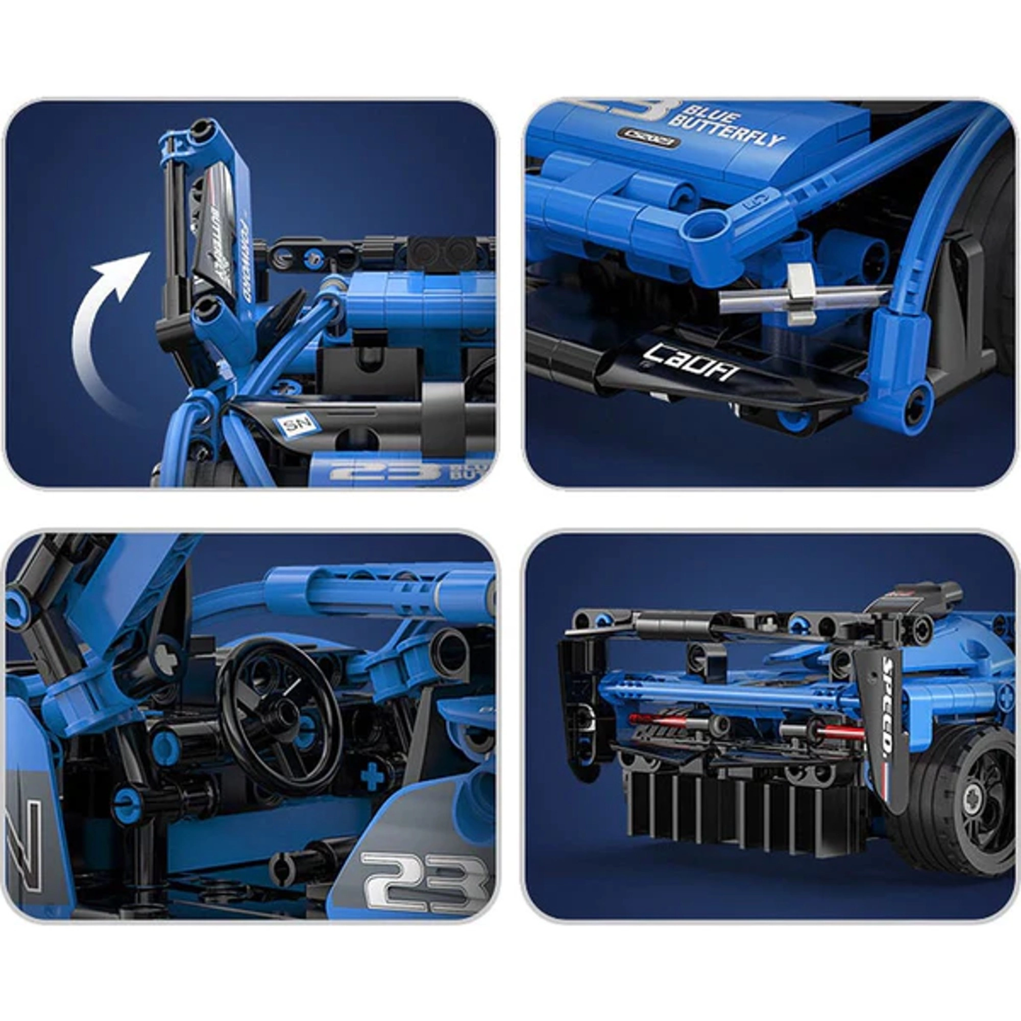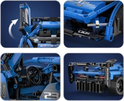 Model v elegantni modri barvi s črnimi elementi ponuja odpirajoča se vrata, nastavljiv spojler in funkcionalen volan. Deli so kompatibilni z drugimi seti CADA, zato lahko razširjate svojo zbirko in ustvarjate še večje konstrukcije. Embalaža je reprezentativna, idealna kot darilo za otroke od 6 let in navdušene graditelje.