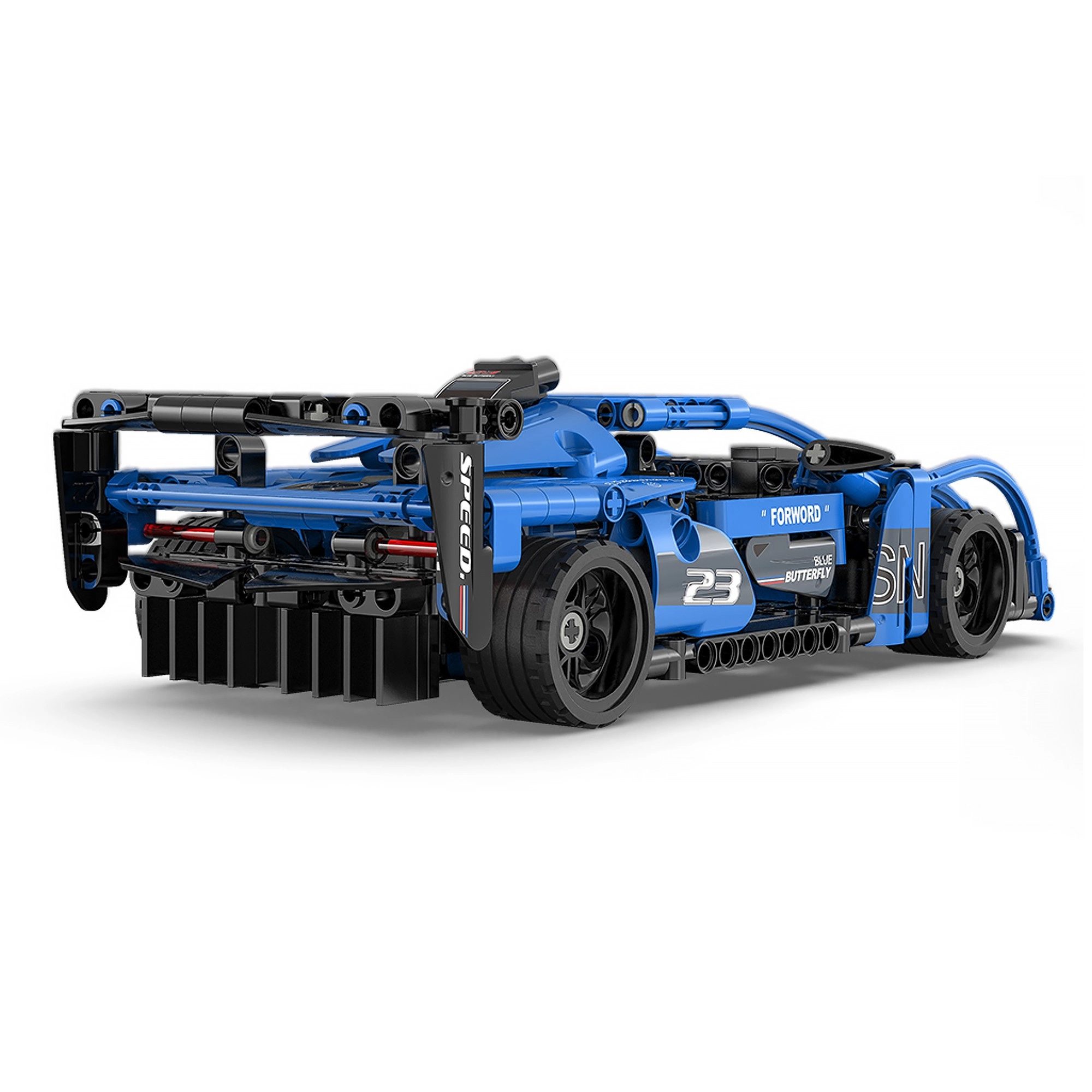 Gradbeni komplet športnega avtomobila Shadow je zasnovan z poudarkom na podrobnostih, ki okrepijo doživetje pri igri in sestavljanju. Zahvaljujoč pogona na povratno navijanje je dovolj, da avto potegnete nazaj in spustite – zapelje naprej in prevozi več kot 10 metrov. Gumijasta kolesa zagotavljajo dober oprijem in gladko vožnjo.
