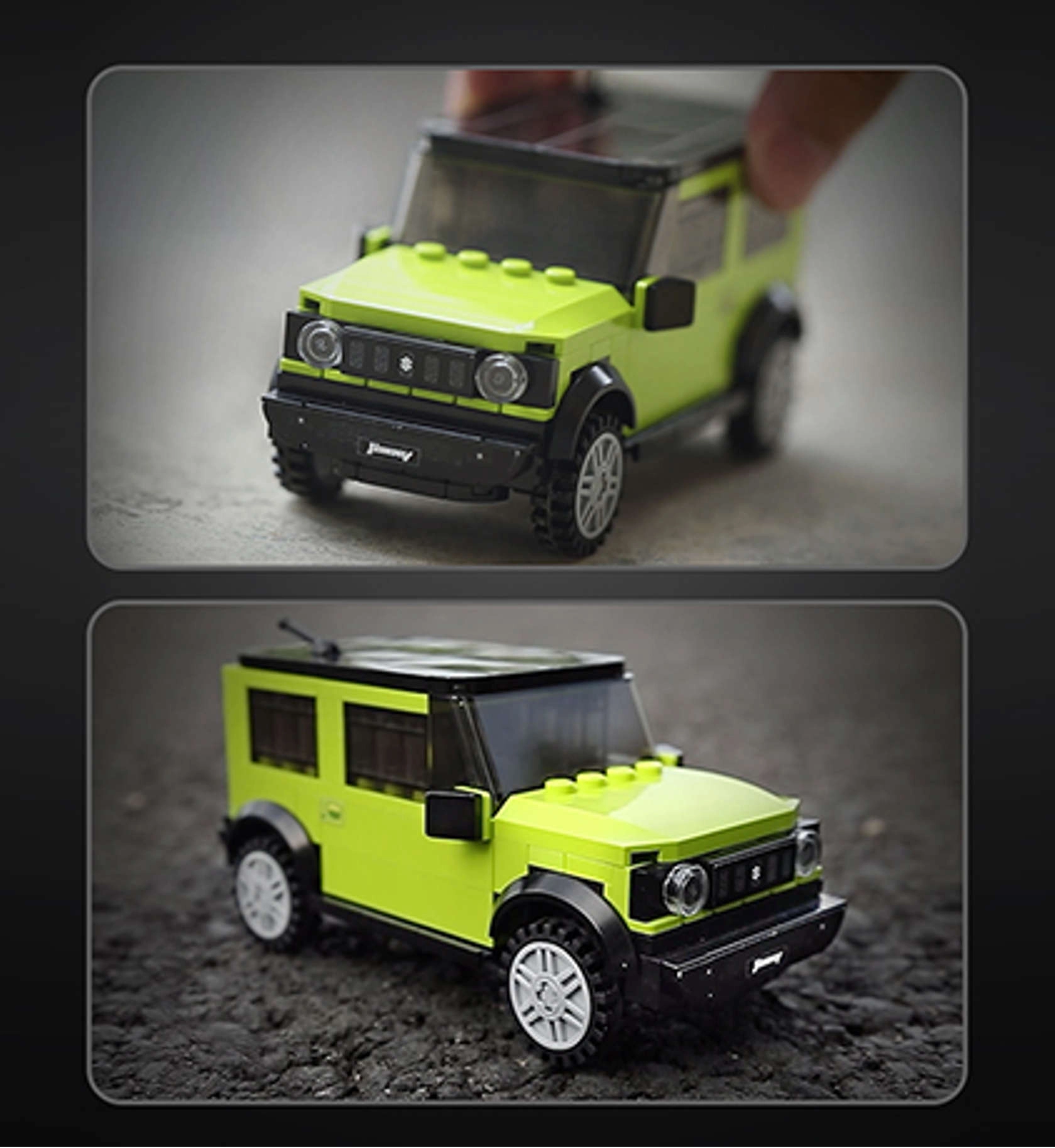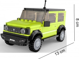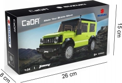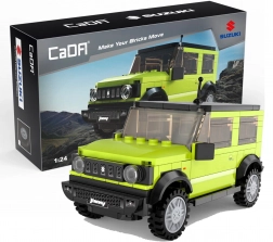 Odkrijte licenciran model SUZUKI Jimny znamke CaDA, ki navduši z realističnimi detajli in robustnim videzom. Zelena karoserija s črnimi poudarki, verno izdelan sprednji del in velika terenska kolesa dajejo setu avtentičen off-road značaj. Končni model se prosto premika po kolesih in odlično izgleda na polici.
