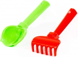 Set je lahek, enostaven za držanje in prilagojen majhnim otroškim rokam. Dolžina 17 cm je idealna za predšolske otroke, ki se učijo kopati, presipati in grabiti.