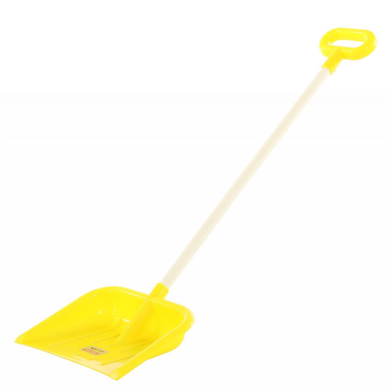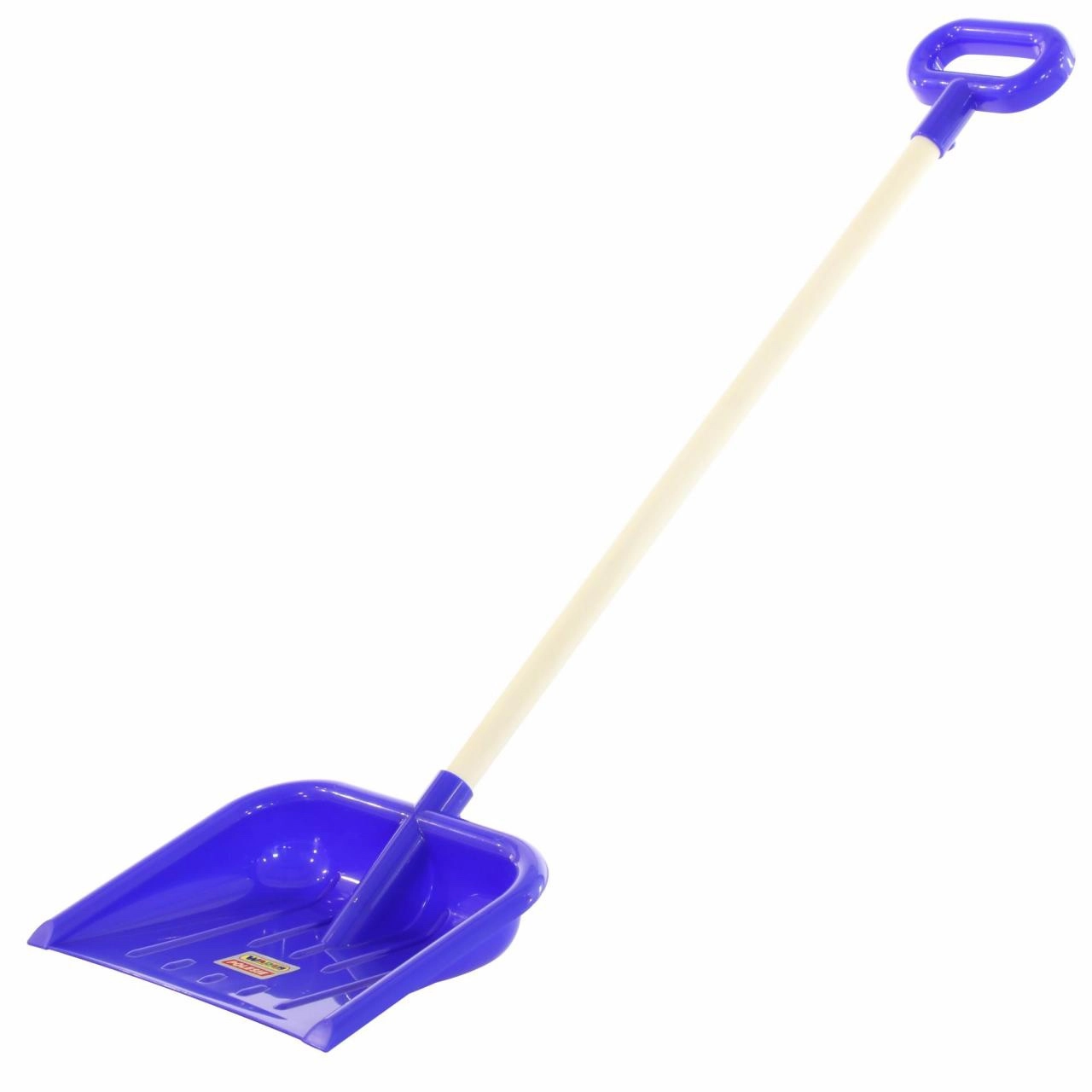 Široka plastična lopata (pribl. 26 cm) z dvignjenimi stranicami za enostavno zajemanje in prenašanje snega ali peska brez nepotrebnega razsipavanja.