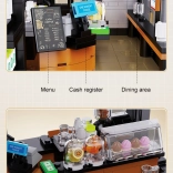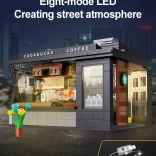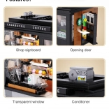 Ustvarite stilsko izložbo in prijetno notranjost s kavnim aparatom, vitrino s sladicami, skodelicami in dekoracijami. Zahvaljujoč LED traku na USB kavarna zasije edinstven kavarniški vibe tako zvečer kot podnevi. Modularna zasnova z odstranljivo streho in zadnjo steno olajša igro in razstavljanje na polici.