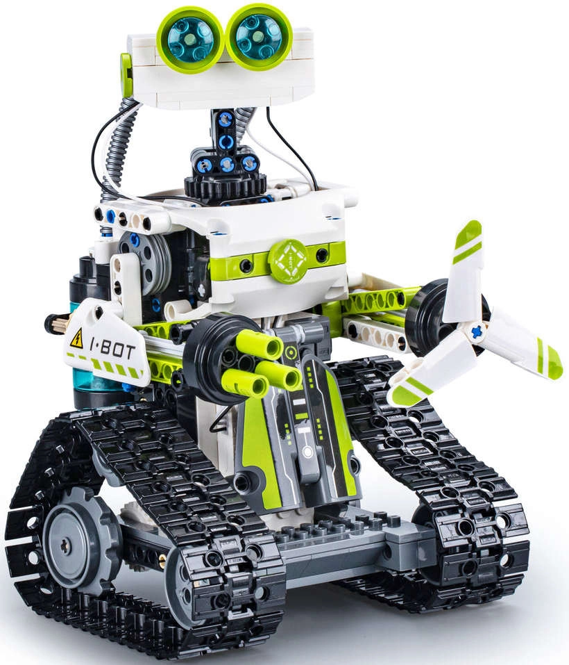 Zgradite in oživite svojega robota I.BOT znamke CaDA. Zahvaljujoč 434 delom in preprosti mobilni aplikaciji bodo otroci in odrasli uživali tako pri sestavljanju kot pri igri. Robot vozi, obrača glavo in okončine, ima svetleče LED oči in njegova orožna enota se vrti za 360°. Upravljate ga lahko z 2,4 GHz krmilnikom ali prek Bluetooth aplikacije z dosegom več kot 25 m.