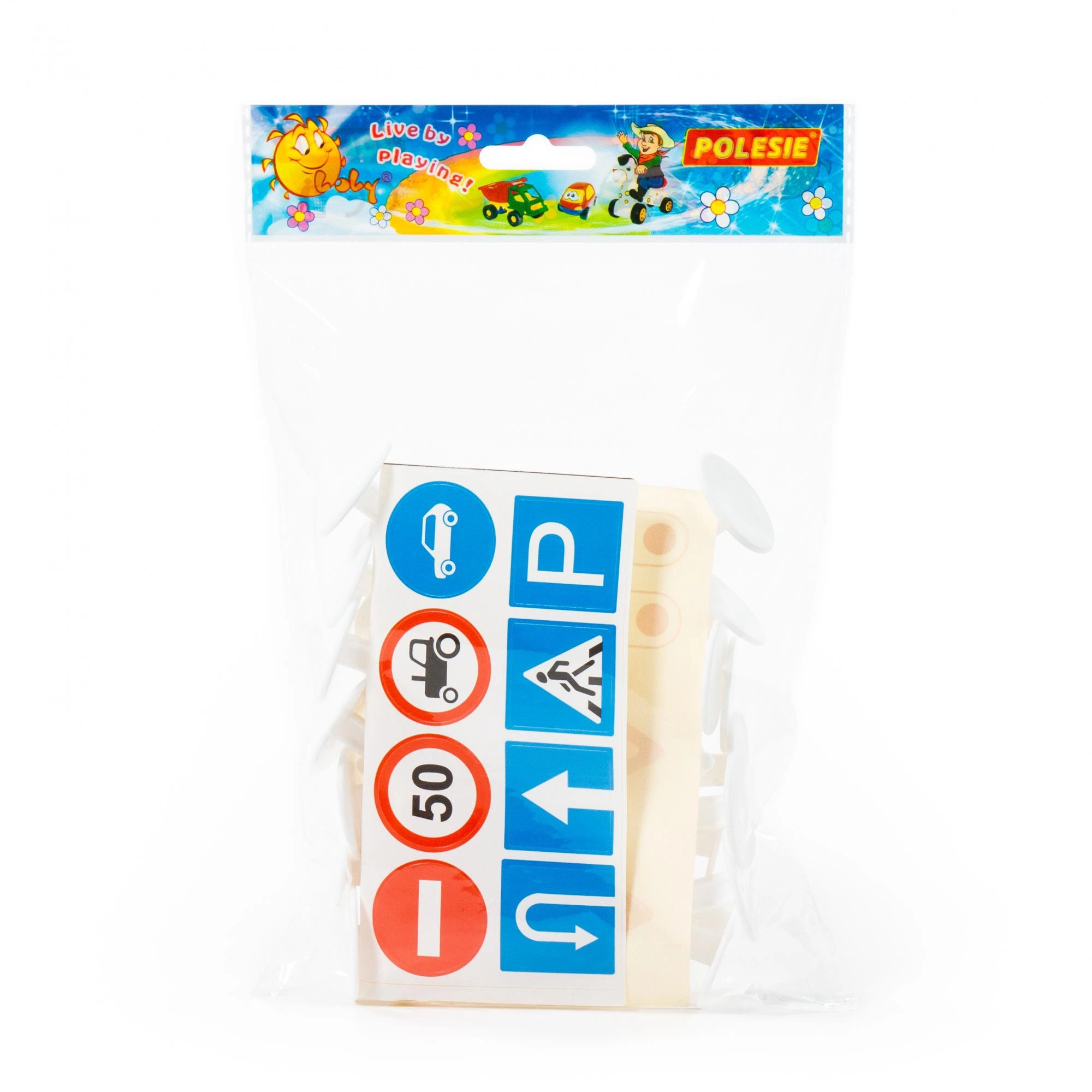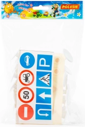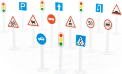 V pakiranju najdete 16 kosov znakov višine približno 9,5 cm ter nalepke za njihovo označevanje. Zahvaljujoč lahki plastični konstrukciji so enostavni za rokovanje, otroci pa lahko vadijo orientacijo v prometu – od prehoda za pešce in prepovedi vstopa do omejitve hitrosti.