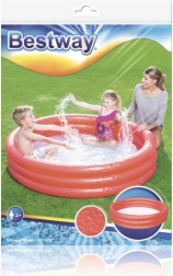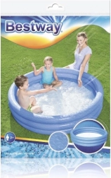 Napihljiv bazen znamke Bestway je izdelan iz trpežnega vinilnega materiala in ponuja tri enake napihljive obroče, ki zagotavljajo stabilnost in udobje. S prostornino 282 litrov (74 galonov) je dovolj velik za otroške aktivnosti na vrtu.