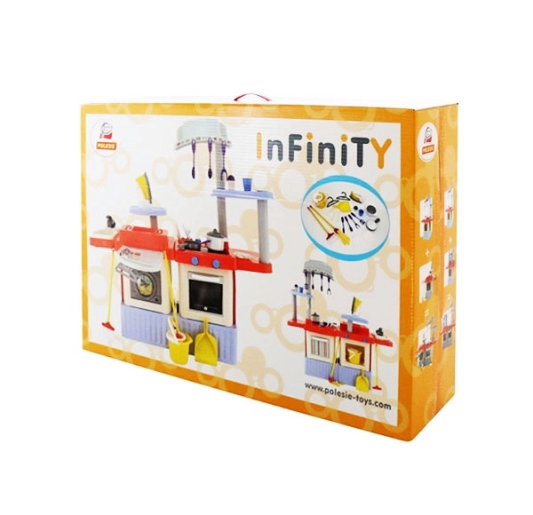 Kuhinjica Infinity Premium otrokom prinaša popolno domače okolje za igro kuhanja, pranja in likanja. Set je sestavljen iz dveh delov: kuhinjskega modula ter modula s pralnim strojem, umivalnikom in likalnim pultom – oba dela lahko uporabljate skupaj ali posamično. Zahvaljujoč bogatemu kompletu dodatkov je igra takoj pripravljena in zelo realistična.